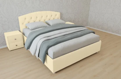 В наличии Кровать Берлин, 90×200, Металлическое с ламелями, Экокожа Стандарт бежевый перламутр, Ножки 5 см стандарт, Стразы На изголовье Чехол на царгах НЕ съемный.