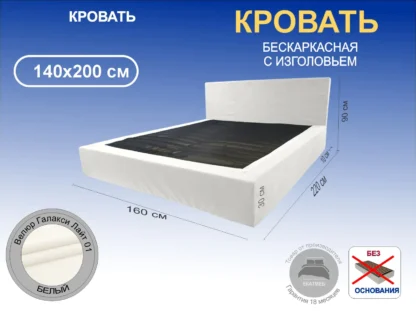 Кровать Бескаркасная, 140×200, бескаркасное, Велюр Галакси лайт 01-белый (молочный оттенок), Ножки Без ножек Чехол на царгах НЕ съемный, Упаковка в картон,.