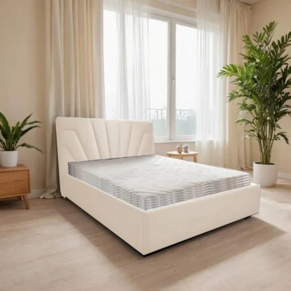 В наличии Кровать Каир, 120×200, Металлическое с ламелями, Велюр Граунд 1-светло-бежевый, Ножки 5 см стандарт Чехол на царгах НЕ съемный.