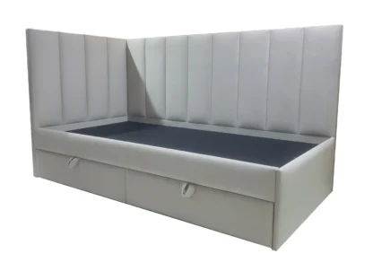 В наличии Кровать Сочи, 90×180, Настил + выдвижные ящики, Велюр Граунд 1-светло-бежевый, Ножки Без ножек, Угол Правый — длинное изголовье справа.