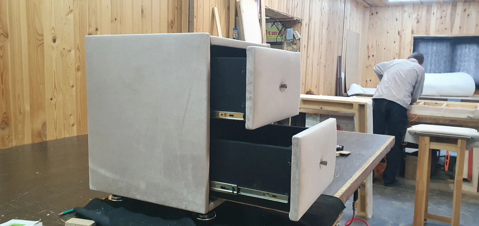 В наличии Прикроватная тумба 2 ящика, Велюр Бэлла 9-светло-бежевый, 400х400х500 Ножки хром. Небольшие потертости. Стояла на выставке в магазине. Без стекла..