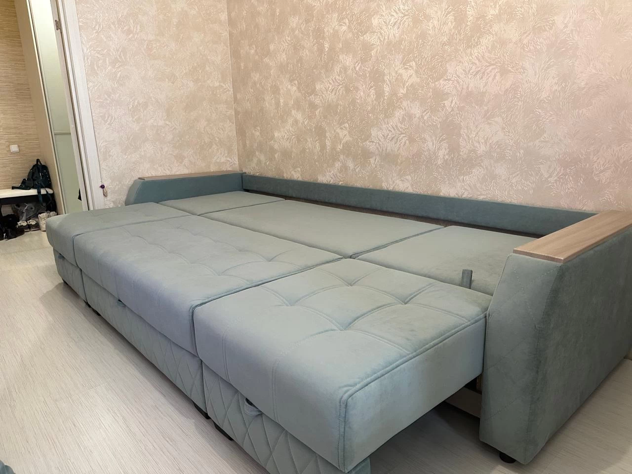 Раскладной диван трансформер, можно сделать П-образный, угловой, прямой. Размеры Ширина 3150 мм Глубина 1550 мм. Наполнение пружинный блок бонель. Спальное место в разложенном виде 2850х1550 мм.