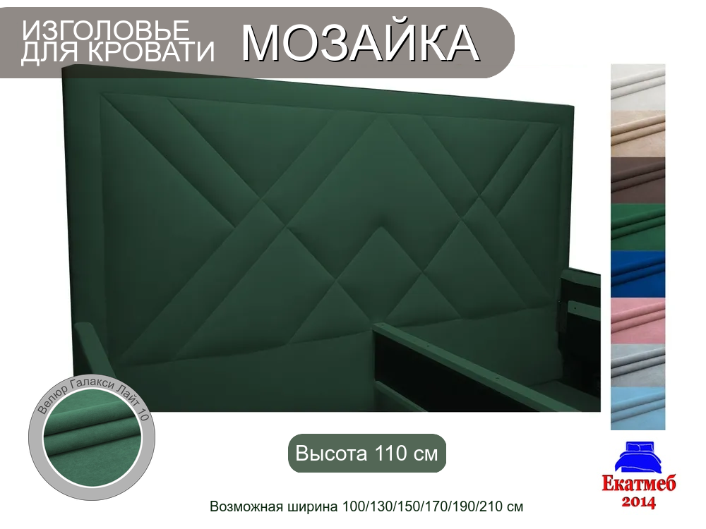 В наличии Изголовье Мозайка, 180, Велюр Галакси лайт 10-зеленый, Упаковка в картон,.
