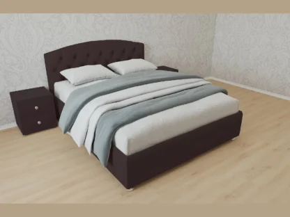 В наличии Кровать Берлин, 120×200, Металлическое с ламелями, Экокожа Стандарт коричневый, Ножки 5 см стандарт.