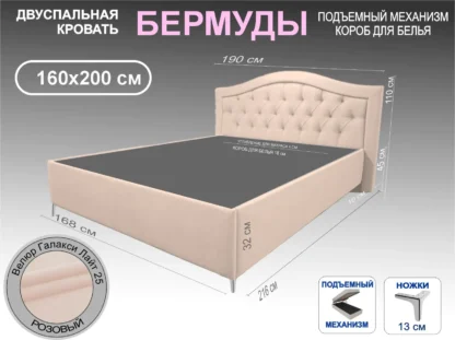 В наличии Кровать Бермуды, 160×200, Подъемный механизм полное дно с полкой, Велюр Галакси лайт 25-светло розовый, Ножки 13 см угловые хром Чехол на царгах НЕ съемный,.