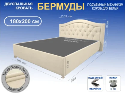В наличии Кровать Бермуды, 180×200, Подъемный механизм полное дно с полкой, Велюр Галакси лайт 02-бежевый, Ножки 5 см стандарт Чехол на царгах НЕ съемный.