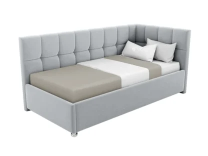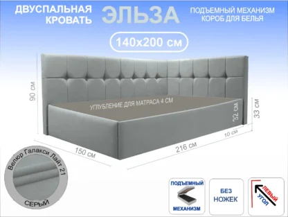Кровать Эльза, 140×200, Подъемный механизм полное дно с полкой, Велюр Галакси лайт 21-серый, Ножки Без ножек, Угол Левый — длинное изголовье слева Чехол на царгах НЕ съемный,.