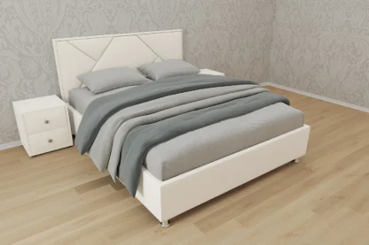 В наличии Кровать Линда, 140×200, Подъемный механизм полное дно с полкой, Велюр Галакси лайт 01-белый (молочный оттенок), Ножки Без ножек.