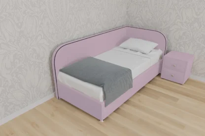 В наличии Кровать Скаут, 80×190, Металлическое с ламелями, Велюр Галакси лайт 25-розовый, Ножки 5 см стандарт, Угол Левый — длинное изголовье слева.