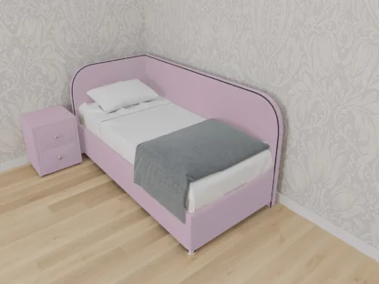 В наличии Кровать Скаут, 80×190, Металлическое с ламелями, Велюр Галакси лайт 25-розовый, Ножки 5 см стандарт, Угол Правый — длинное изголовье справа.