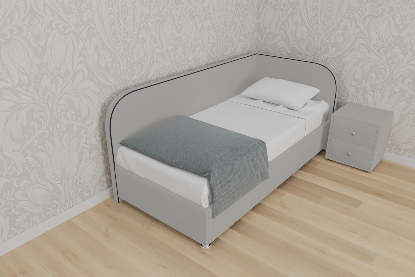 В наличии Кровать Скаут, 90×200, Металлическое с ламелями, Велюр Граунд 5-серый, Ножки Без ножек, Угол Левый — длинное изголовье слева Чехол на царгах НЕ съемный.