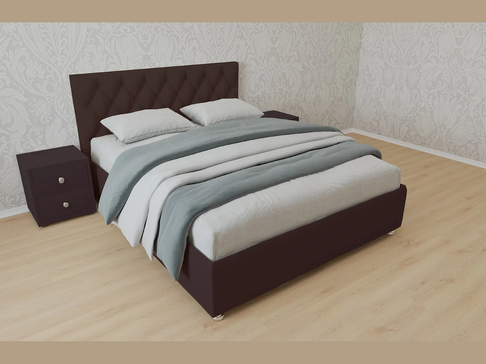 В наличии Кровать Версаль, 180×200, Металлическое с ламелями, Экокожа Стандарт коричневый, Ножки 5 см стандарт Чехол на царгах НЕ съемный.