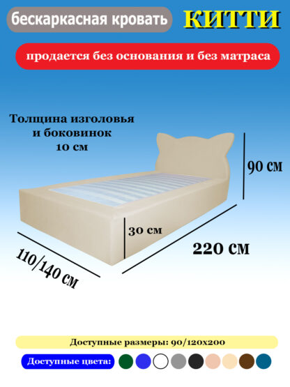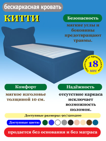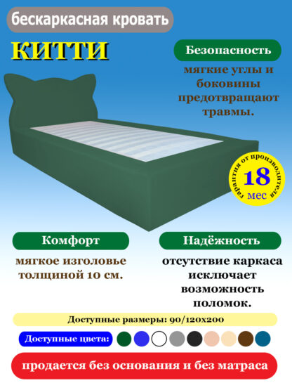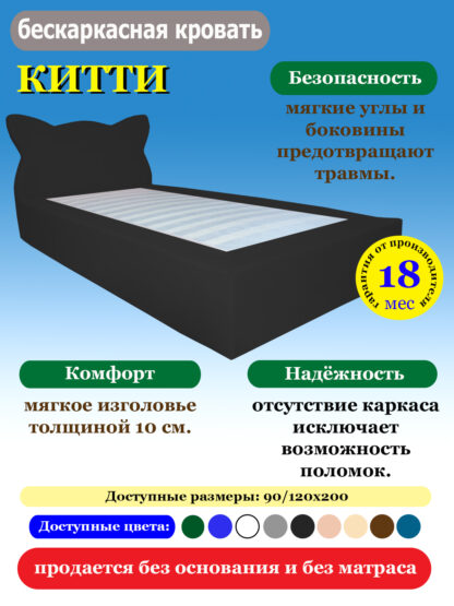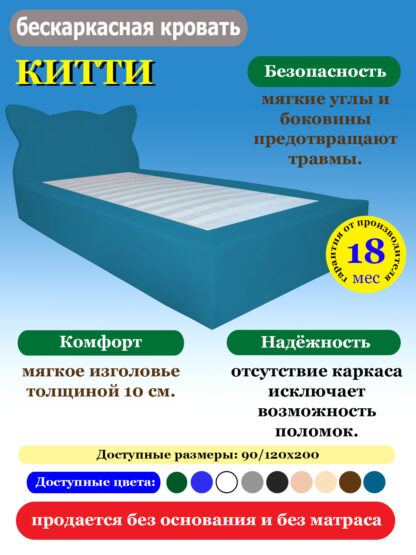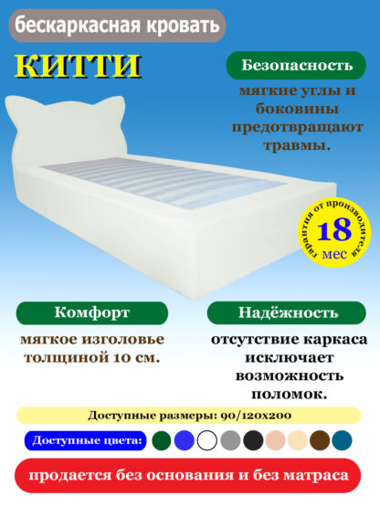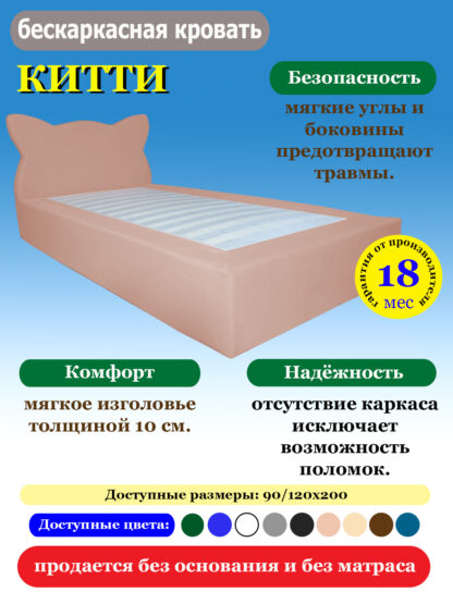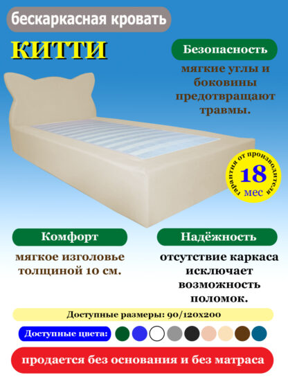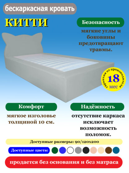 кровать односпальная, кровать мягкая, кровать бескаркасная Китти
