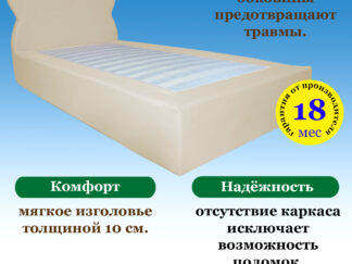 - Комфорт: мягкое изголовье и мягкие боковинки выполнены из ППУ толщиной 10 см что делает кровать травмобезопасной.