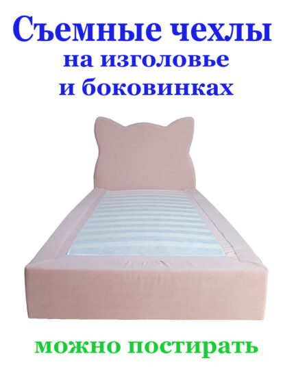 - Простота ухода. Съёмные чехлы позволяют быстро освежить внешний вид кровати — достаточно снять, постирать и вернуть на место.