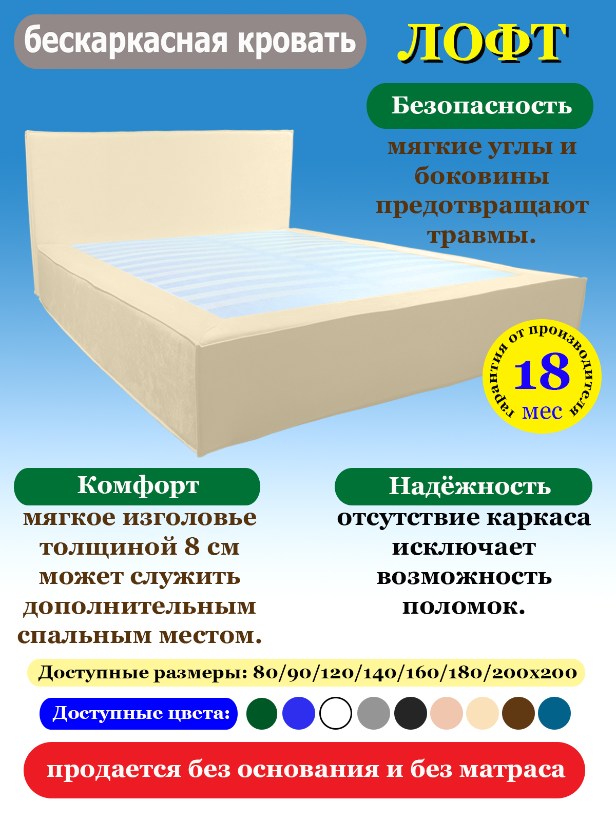 Конструкция бескаркасной кровати выполнена без жёсткого каркаса, это делает её легкой и компактной при транспортировке.