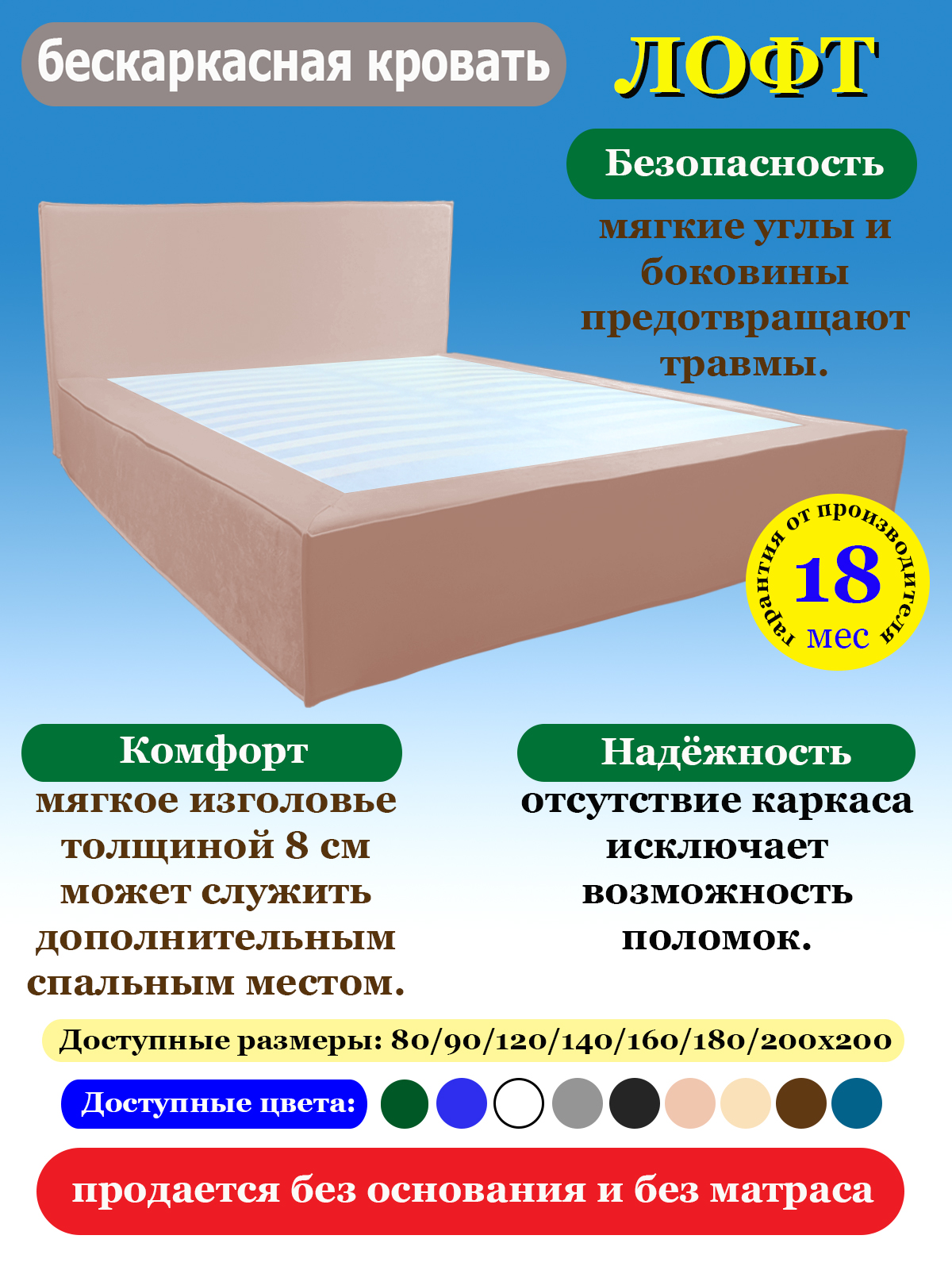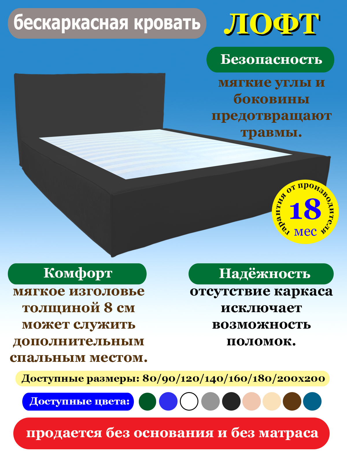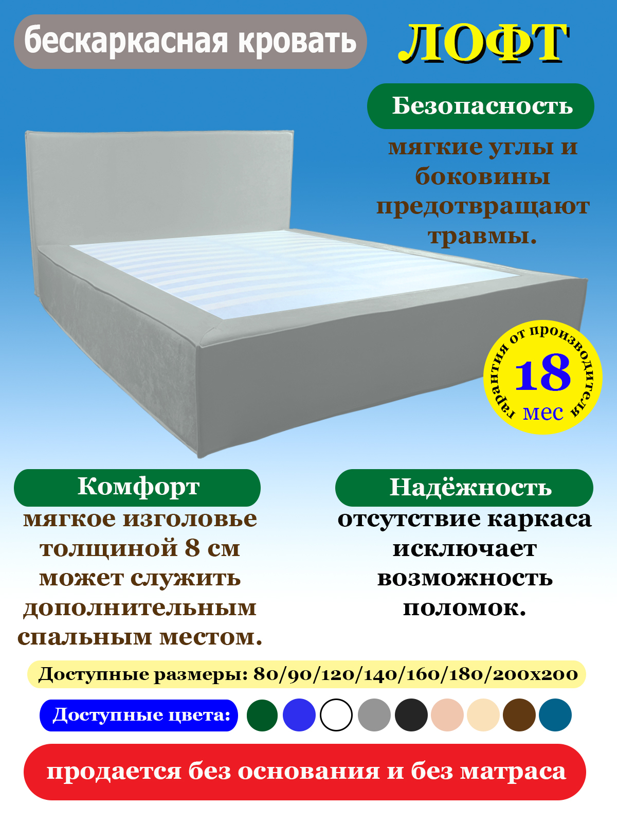 Бескаркасная кровать поставляется в разобранном виде с подробной инструкцией. Гарантия 18 месяцев покроет возможные дефекты.