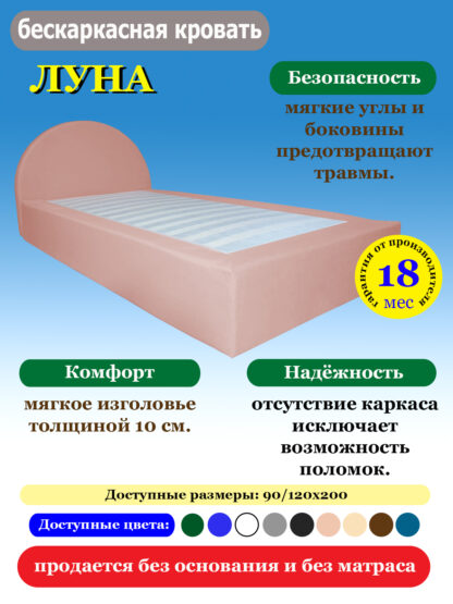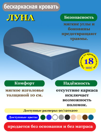 Кровать бескаркасная ЛУНА — современное и безопасное решение для комфортного сна.