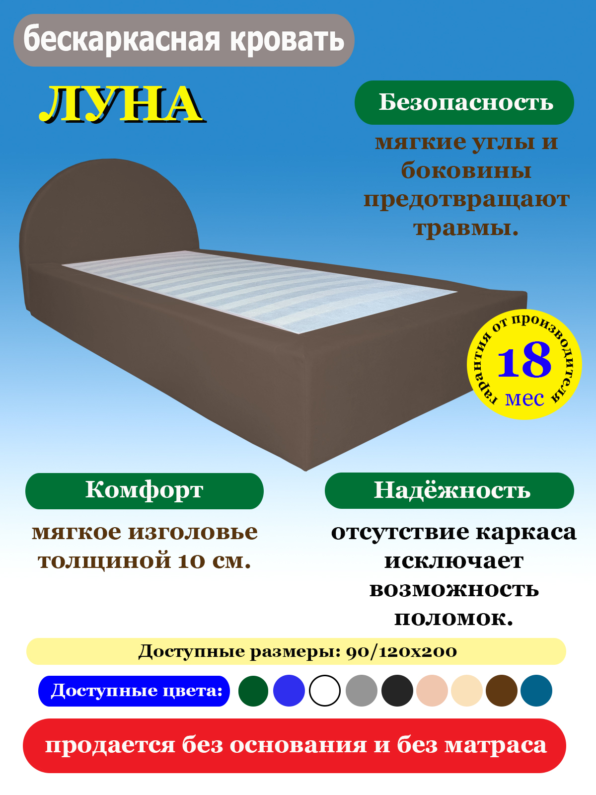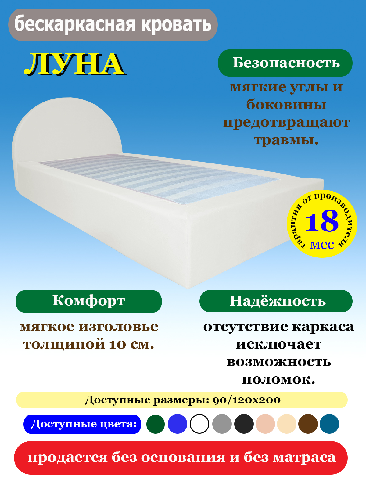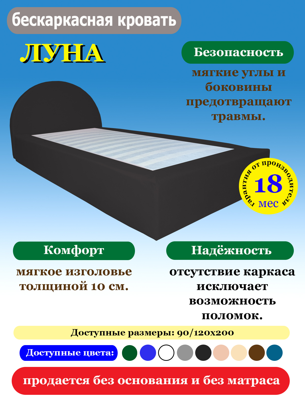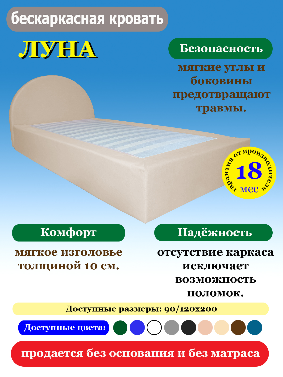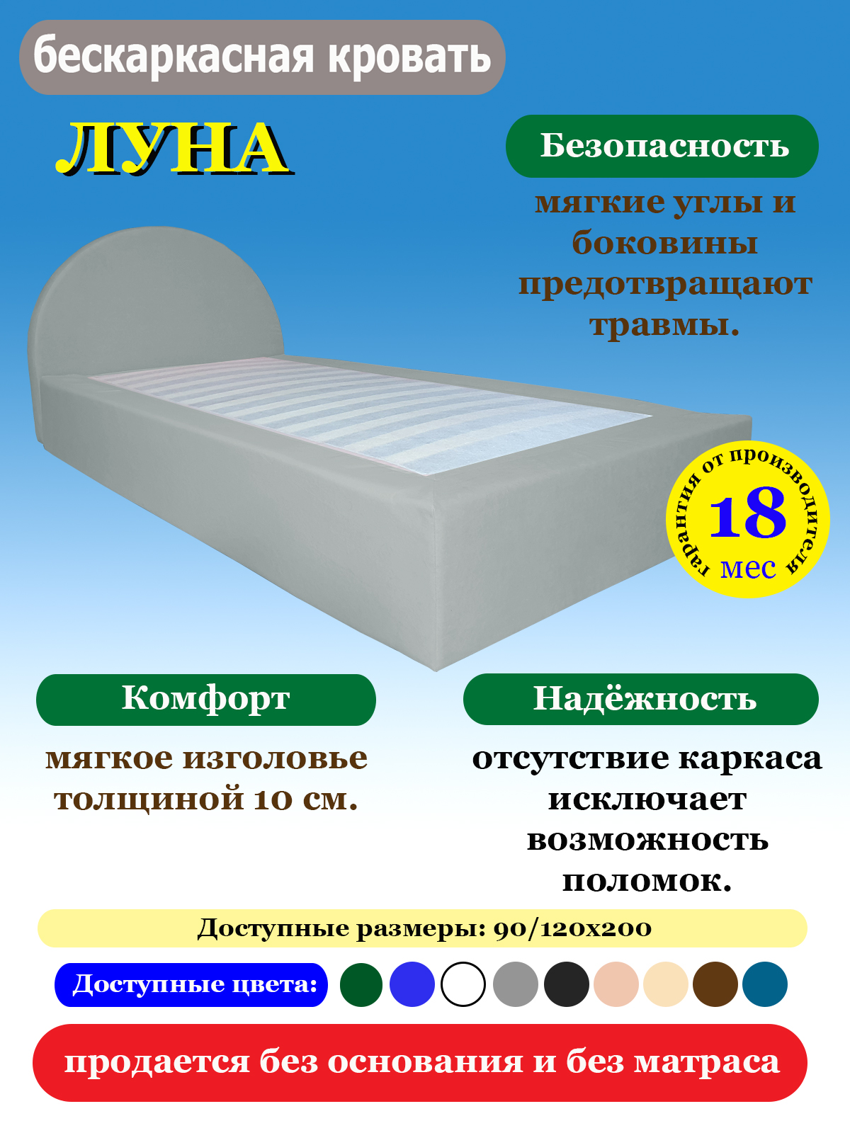 Кровать бескаркасная ЛУНА — современное и безопасное решение для комфортного сна.