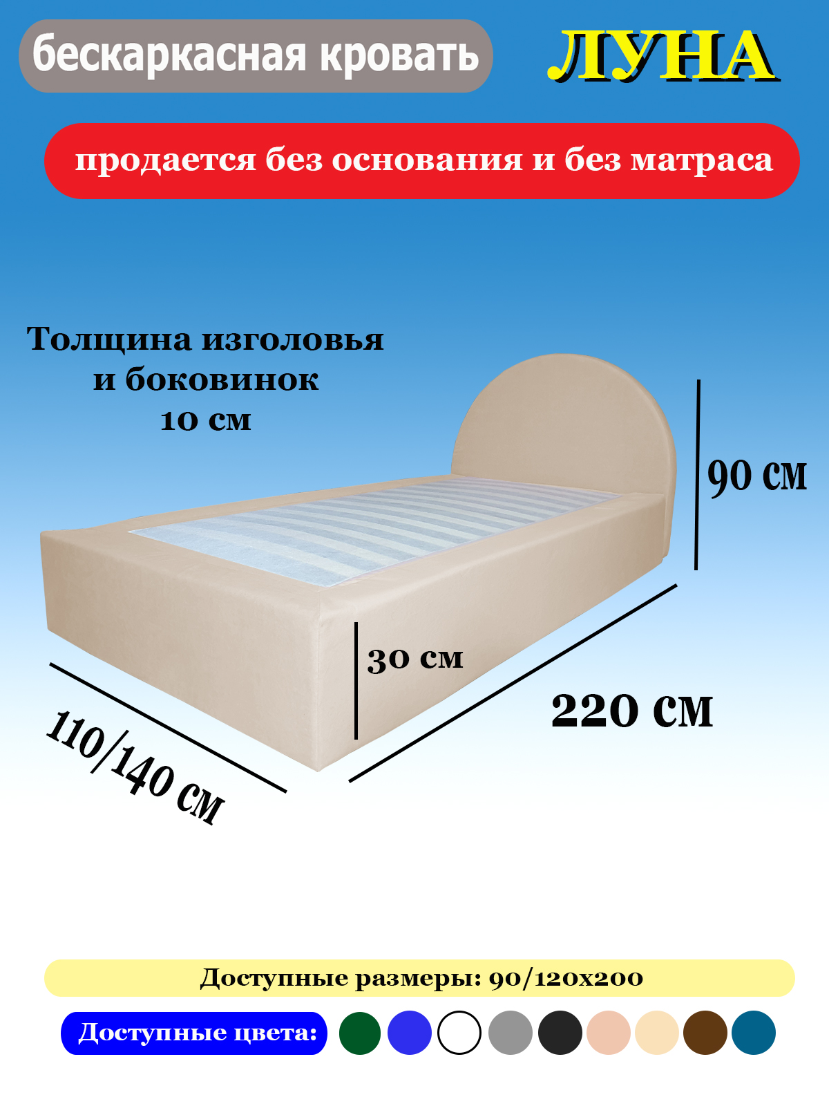 кровать односпальная, кровать мягкая, кровать бескаркасная Луна
