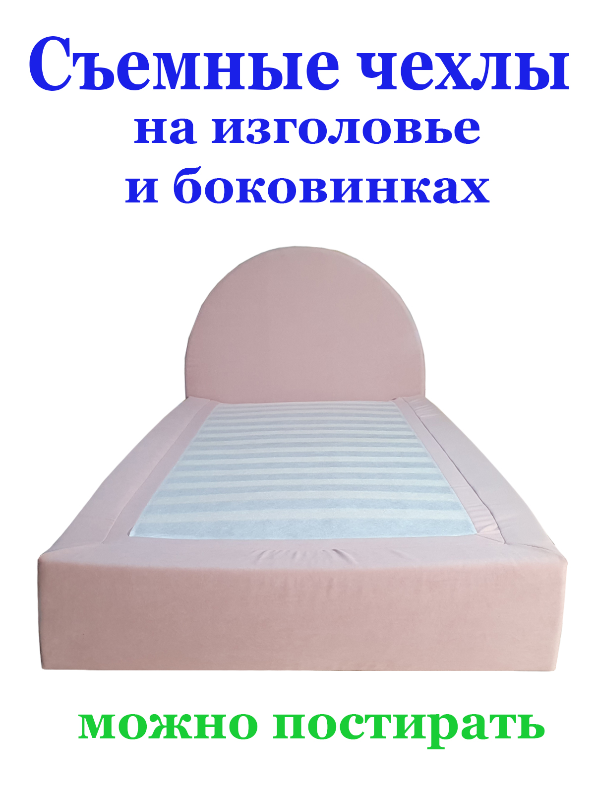 - Простота ухода. Съёмные чехлы позволяют быстро освежить внешний вид кровати: достаточно снять, постирать и вернуть на место.
