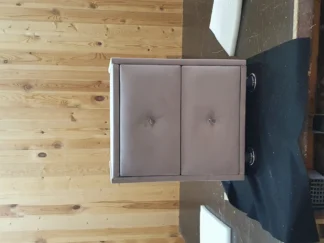 Прикроватная тумба 2 ящика, Велюр Бэлла 9-светло-бежевый, 400х400х500 Ножки хром. Небольшие потертости. Стояла на выставке в магазине. Без стекла