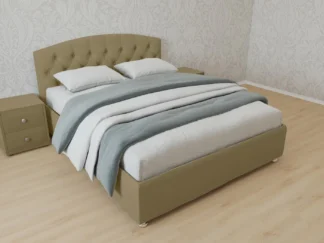 Кровать Берлин, 120×200, с подъемным механизмом полное дно с полкой, Велюр Граунд 2-темно-бежевый, Ножки 5 см стандарт Чехол на царгах НЕ съемный