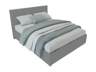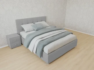 Кровать Афина, 180×200, с подъемным механизмом полное дно с полкой, Велюр Граунд 5-серый, Ножки 5 см стандарт Чехол на царгах НЕ съемный