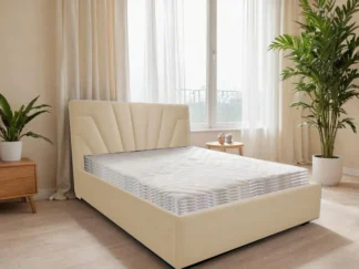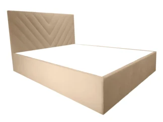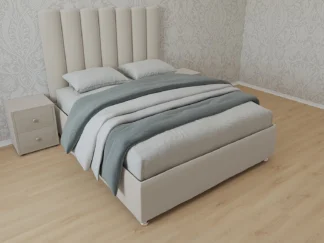 Кровать Каир, 140×200, с подъемным механизмом полное дно с полкой, Велюр Астория Изи Клин 1114 — бежевый, Ножки 5 см стандарт Чехол на царгах НЕ съемный