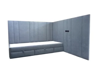 Кровать Заказная, 80×200, с выдвижными ящиками, Велюр Латифа 12 — серый, без ножек