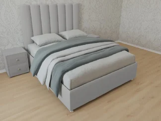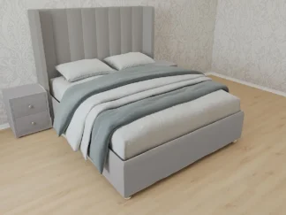 Кровать Каир, 160×200, с подъемным механизмом полное дно с полкой, Велюр Граунд 5-серый, Ножки 5 см стандарт Чехол на царгах НЕ съемный