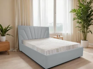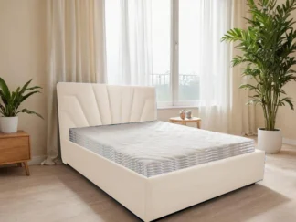 Кровать Дели, 140×200, с подъемным механизмом полное дно с полкой, Велюр Галакси лайт 01-белый (молочный оттенок), без ножек Чехол на царгах НЕ съемный