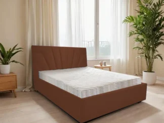 Кровать Каир, 160×200, с подъемным механизмом полное дно с полкой, Велюр Граунд 3-коричневый, Ножки 5 см стандарт Чехол на царгах НЕ съемный