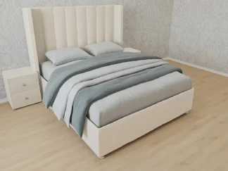 Кровать Канди, 160×200, с подъемным механизмом половина дна, Велюр Галакси лайт 02-бежевый, Ножки 5 см стандарт Чехол на царгах НЕ съемный
