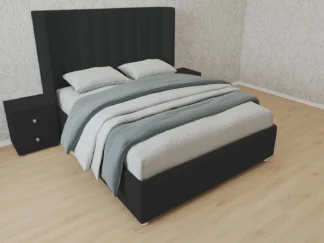 Кровать Женева, 180×200, с подъемным механизмом полное дно с полкой, Велюр Галакси лайт 15-черный, Ножки 5 см стандарт Чехол на царгах НЕ съемный