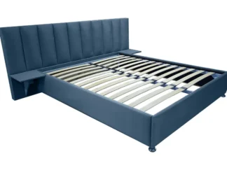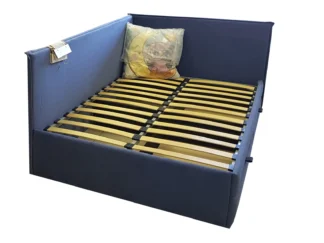 Кровать Сеул, 120×200, с выдвижными ящиками, Велюр Велютто 48-синий, без ножек, Угол Левый — длинное изголовье слева Чехол на царгах НЕ съемный, задняя спинка в ткани, с выставки