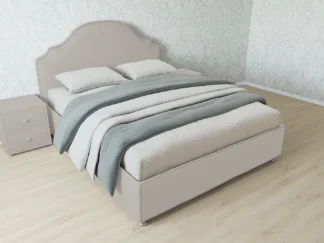 Кровать Мария, 180×200, с подъемным механизмом полное дно с полкой, Велюр Граунд 2-темно-бежевый, Ножки 13 см угловые хром