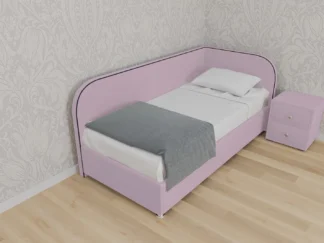 Кровать Санремо, 120×200, с подъемным механизмом полное дно с полкой, Велюр Галакси лайт 25-светло розовый, Ножки 5 см стандарт Чехол на царгах НЕ съемный