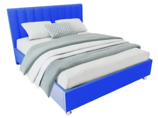 Кровать Челси, 120×200, с подъемным механизмом полное дно с полкой, Велюр Граунд 10-синий, Ножки 5 см стандарт
