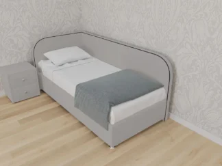 Кровать Сочи, 90×180, с выдвижными ящиками, Велюр Граунд 1-светло-бежевый, без ножек, Угол Правый