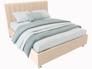 Кровать Челси, 140×200, с подъемным механизмом полное дно с полкой, Велюр Галакси лайт 02-бежевый, Ножки 5 см стандарт Чехол на царгах НЕ съемный