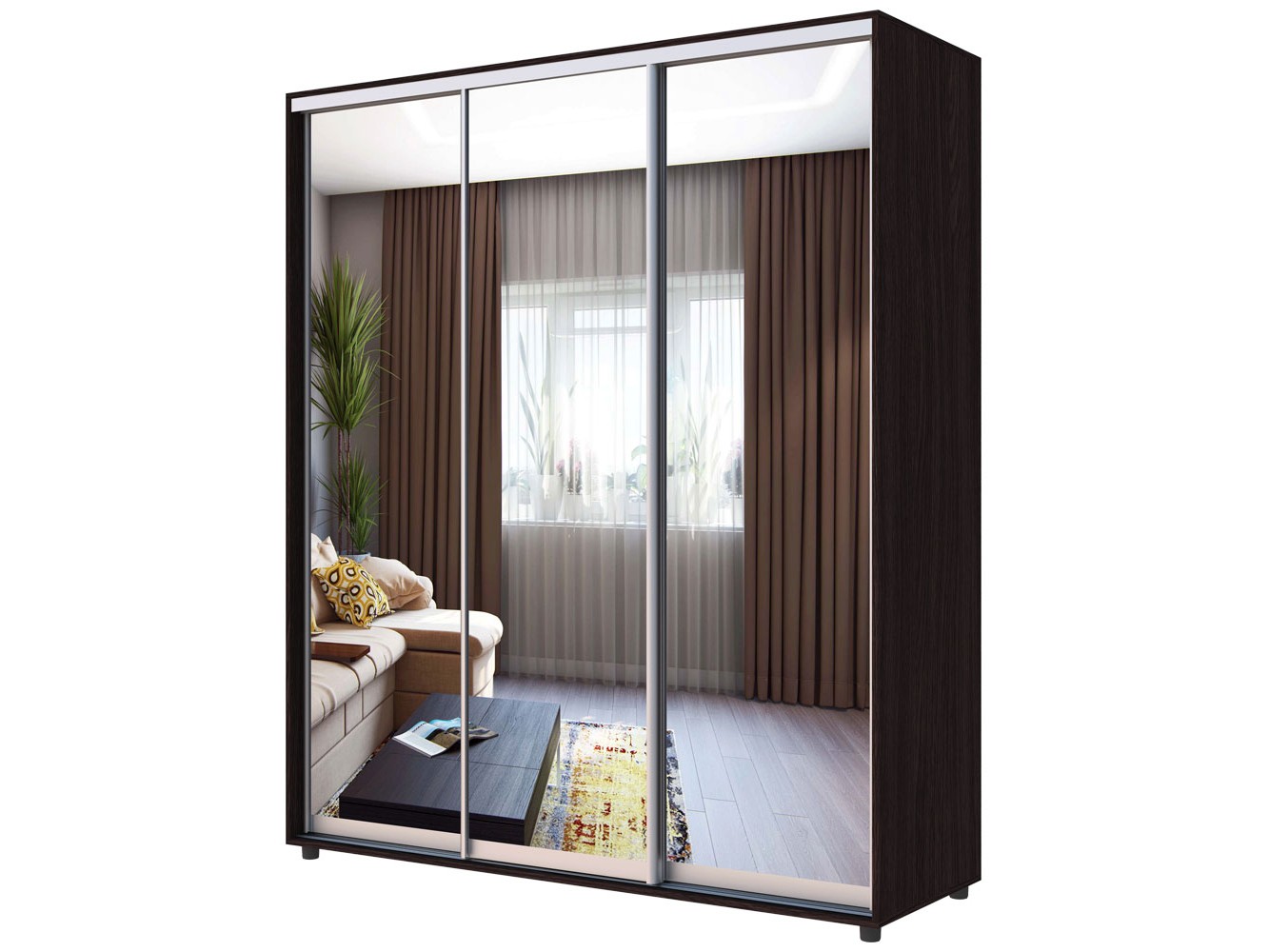 Шкаф-купе Экон-21-18-555 Зеркало ВхШхГ (2150х1770х600) цвет венге