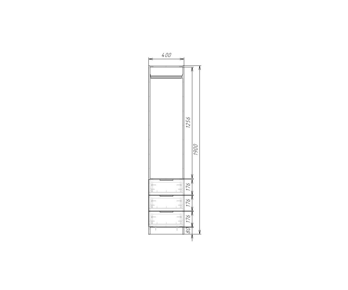 Распашной шкаф для одежды Шкаф Однодверный ЭШ-РС-19-4-3я 1900x400x520 мм, 3 ящика украсит интерьер комнаты в стилях лофт, сканди, эко-минимализм. Оригинальная цветовая палитра и современная функциональность добавят в жилое помещение гармонии и комфорта.