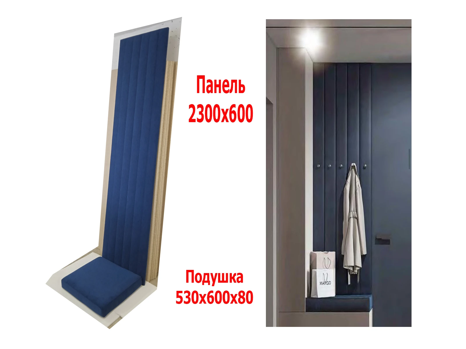 В наличии Стеновая панель Заказная, Велюр Галакси лайт 14 — темно-синий, Панель 6 полос 2300х600 толщина 4 см, сидушка 530х600 толщина 7 см.